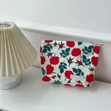Korean Floral Cosmetic Bag Cotton Fabric Makeup Organizer Bags Women Portable Cosmetic Storage Pouch Zipper Beauty Case Clutches